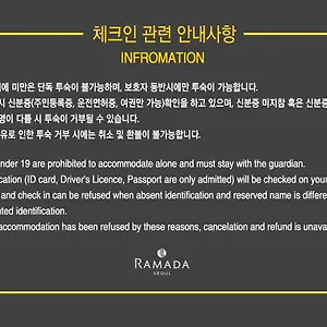 Das 4-Sterne-Hotel Ramid Hotel Seoul ist etwa 30 km vom Flughafen Gimpo entfernt und bietet einen Whirlpool und Saunaanlagen an. Sportkomplex Jamsil ist in 2 km Entfernung gelegen.